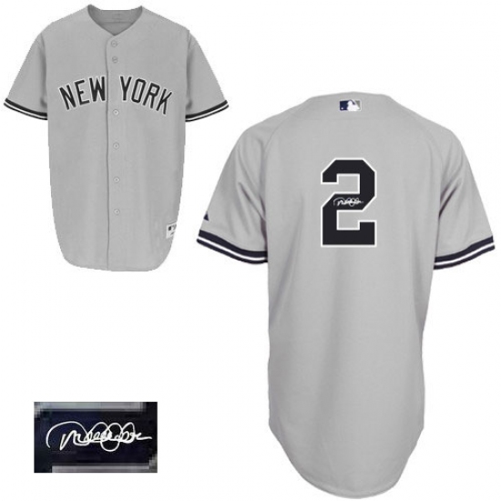 Men's Majestic New York Yankees #2 Derek Jeter Authentic Grey Road Autographed MLB Jersey
