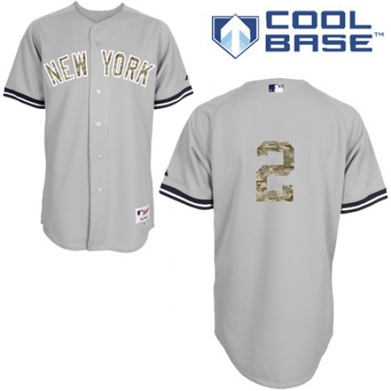 Men's Majestic New York Yankees #2 Derek Jeter Authentic Grey USMC Cool Base MLB Jersey