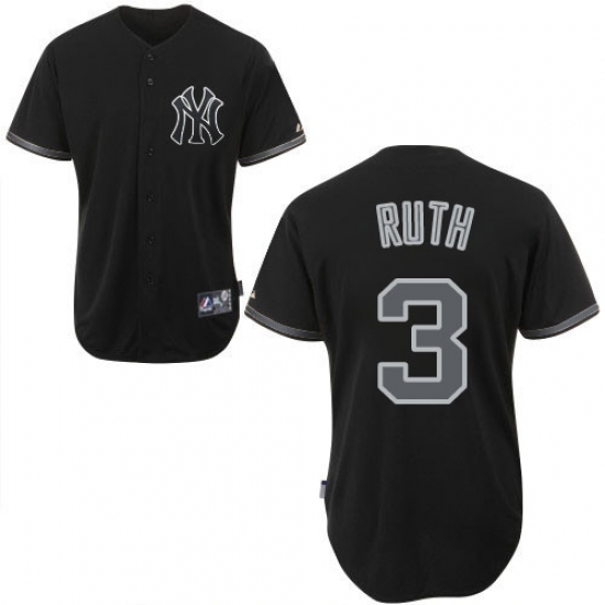 Men's Majestic New York Yankees #3 Babe Ruth Authentic Black Fashion MLB Jersey