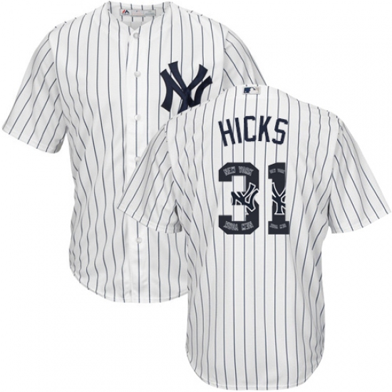 Men's Majestic New York Yankees #31 Aaron Hicks Authentic White Team Logo Fashion MLB Jersey