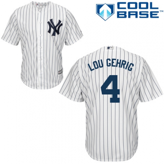 Men's Majestic New York Yankees #4 Lou Gehrig Replica White Home MLB Jersey