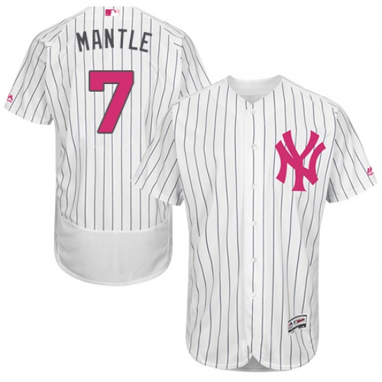 Men's Majestic New York Yankees #7 Mickey Mantle Authentic White 2016 Mother's Day Fashion Flex Base MLB Jersey