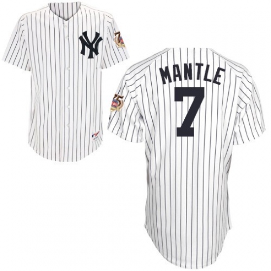 Home>MLB>New York Yankees>Mickey Mantle>Men's Majestic New York Yankees #7 Mickey Mantle Authentic White 75TH Patch MLB Jersey