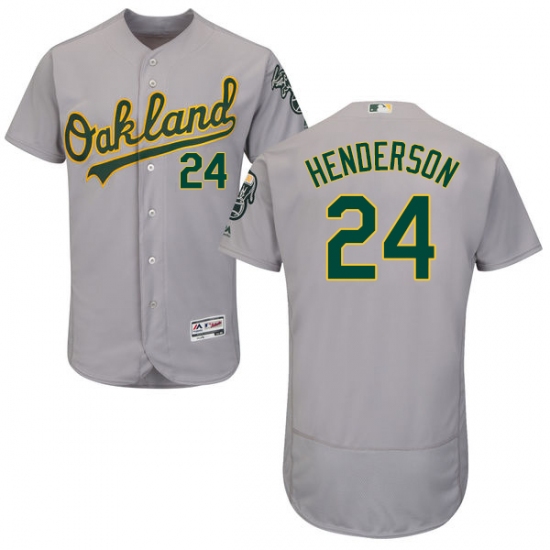 Men's Majestic Oakland Athletics #24 Rickey Henderson Grey Road Flex Base Authentic Collection MLB Jersey
