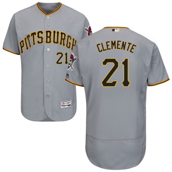 Home>MLB>Pittsburgh Pirates>Roberto Clemente>Men's Majestic Pittsburgh Pirates #21 Roberto Clemente Grey Road Flex Base Authentic Collection MLB Jersey