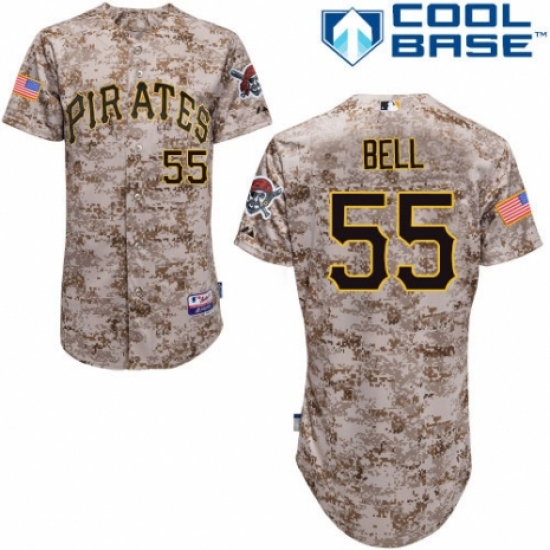 >Men's Majestic Pittsburgh Pirates #55 Josh Bell Replica Camo Alternate Cool Base MLB Jersey