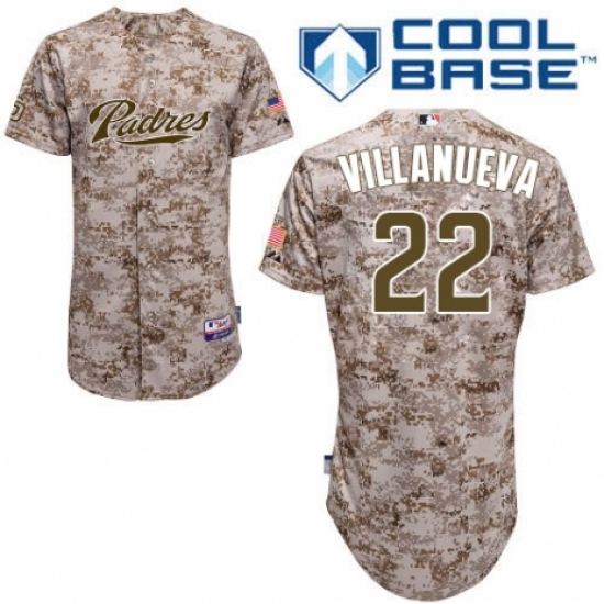 >Men's Majestic San Diego Padres #22 Christian Villanueva Authentic Camo Alternate 2 Cool Base MLB Jersey