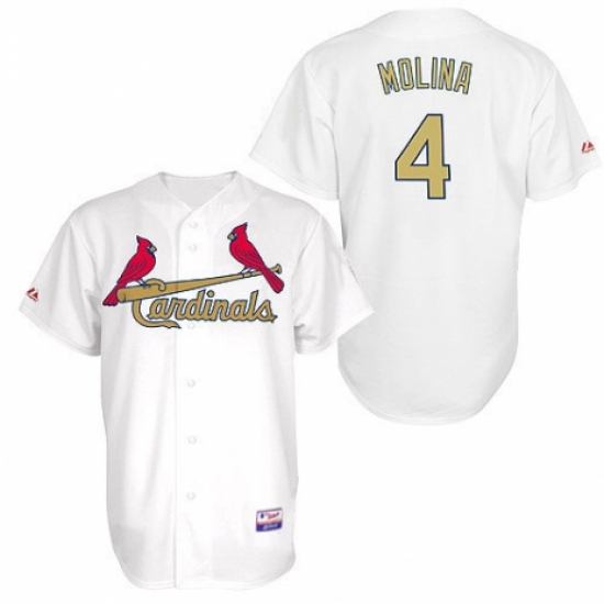 >Men's Majestic St. Louis Cardinals #4 Yadier Molina Authentic White Gold No. MLB Jersey