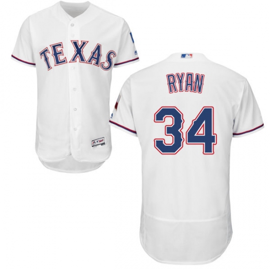 Men's Majestic Texas Rangers #34 Nolan Ryan White Home Flex Base Authentic Collection MLB Jersey