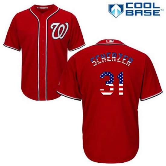 Men's Majestic Washington Nationals #31 Max Scherzer Replica Red USA Flag Fashion MLB Jersey