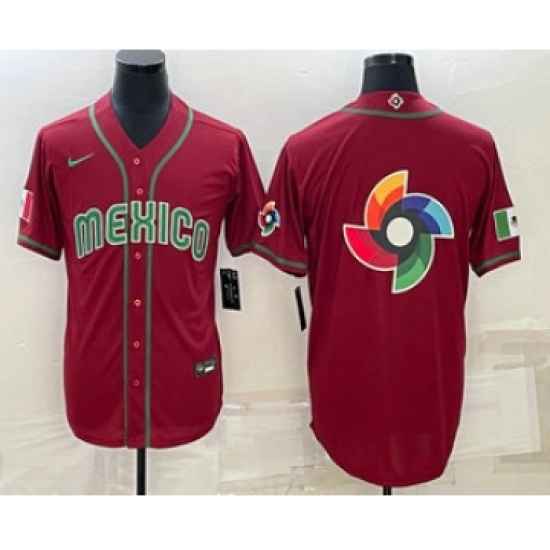 >Men's Mexico Baseball 2023 Red World Baseball Big Logo Classic Stitched Jerseys