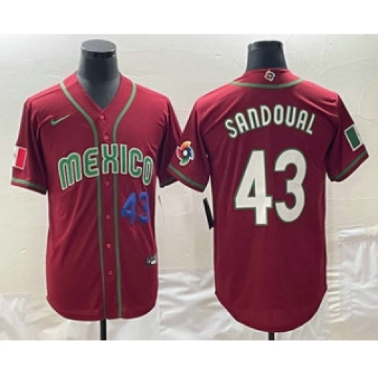 Men's Mexico Baseball #43 Patrick Sandoval Number 2023 Red World Classic Stitched Jersey
