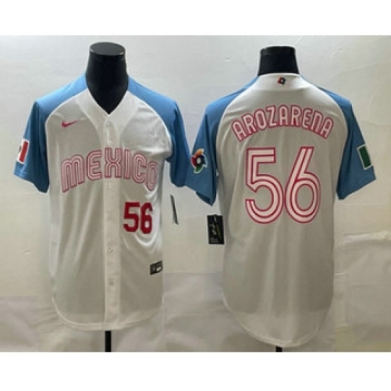 >Men's Mexico Baseball #56 Randy Arozarena Number 2023 White Blue World Classic Stitched Jersey1