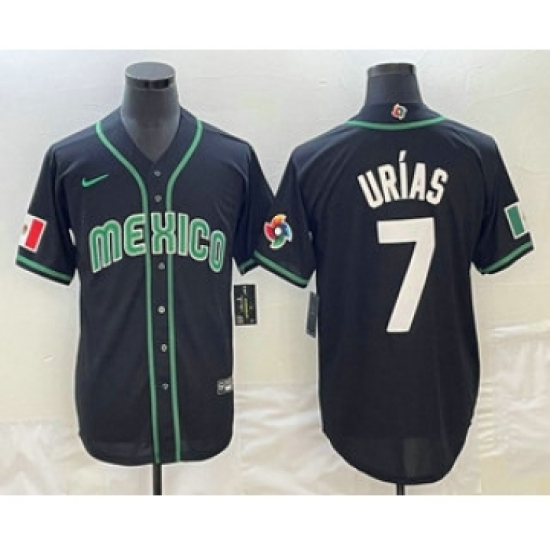 >Men's Mexico Baseball #7 Julio Urias 2023 Black White World Classic Stitched Jersey