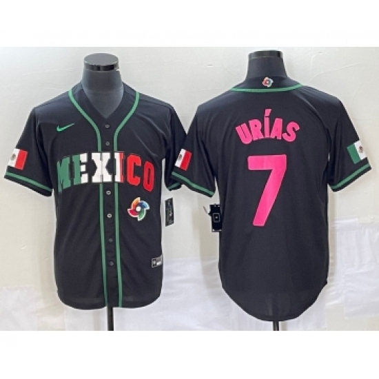 >Men's Mexico Baseball #7 Julio Urias 2023 Black World Baseball Classic Stitched Jersey1