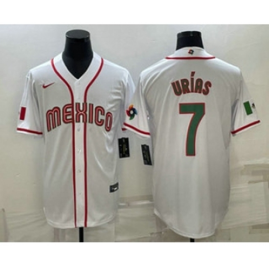 Men's Mexico Baseball #7 Julio Urias Number 2023 White Red World Classic Stitched Jersey5