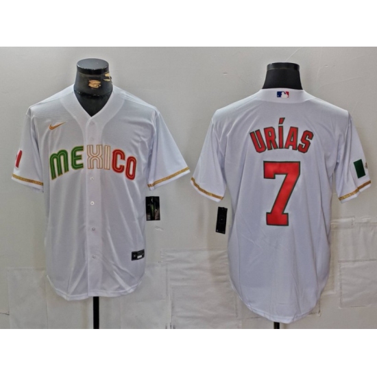 Men's Mexico Baseball #7 Julio Urias 2023 White World Classic Stitched Jersey