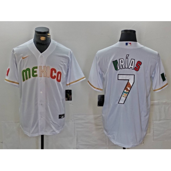 Men's Mexico Baseball #7 Julio Urias 2023 White World Classic Stitched Jerseys