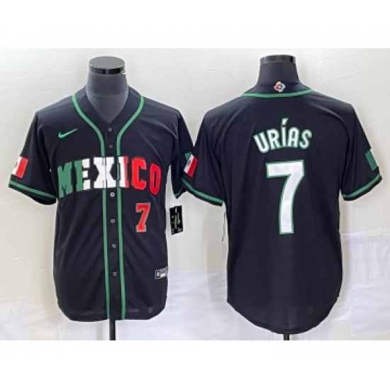 >Men's Mexico Baseball #7 Julio Urias Number 2023 Black White World Classic Stitched Jersey4