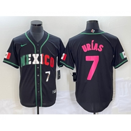 Men's Mexico Baseball #7 Julio Urias Number 2023 Black Pink World Classic Stitched Jersey1