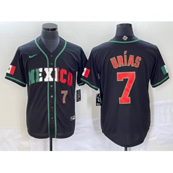 >Men's Mexico Baseball #7 Julio Urias Number 2023 Black World Baseball Classic Stitched Jersey7