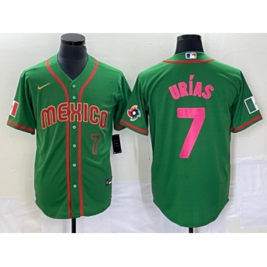 Men's Mexico Baseball #7 Julio Urias Number 2023 Green World Classic Stitched Jersey2
