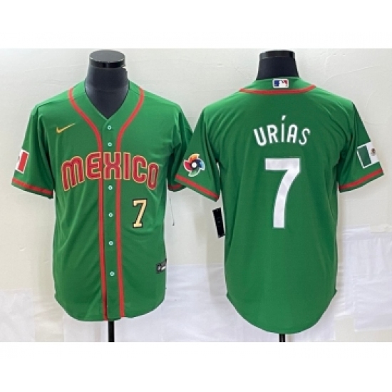 Men's Mexico Baseball #7 Julio Urias Number 2023 Green World Classic Stitched Jersey2