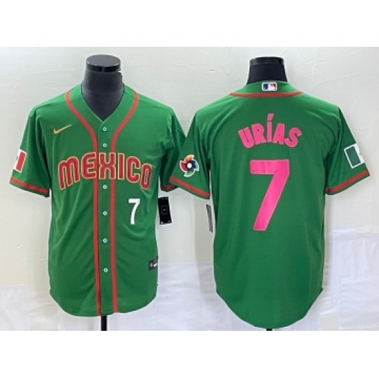 Men's Mexico Baseball #7 Julio Urias Number 2023 Green World Classic Stitched Jersey8