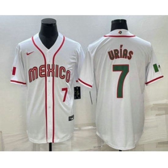 Men's Mexico Baseball #7 Julio Urias Number 2023 White Blue World Baseball Classic Stitched Jersey1
