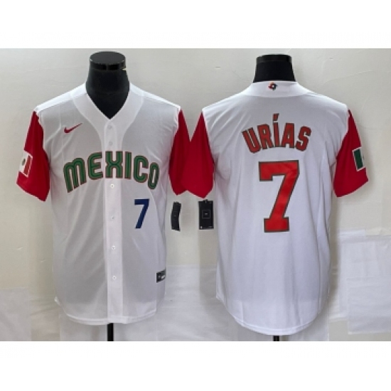 >Men's Mexico Baseball #7 Julio Urias Number 2023 White Red World Classic Stitched Jersey 17