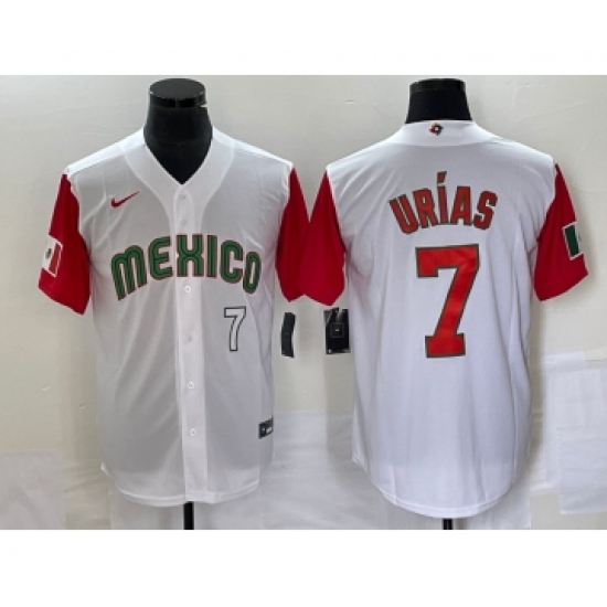 Men's Mexico Baseball #7 Julio Urias Number 2023 White Red World Classic Stitched Jersey20