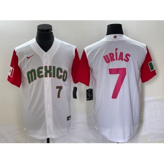 >Men's Mexico Baseball #7 Julio Urias Number 2023 White Red World Classic Stitched Jersey24