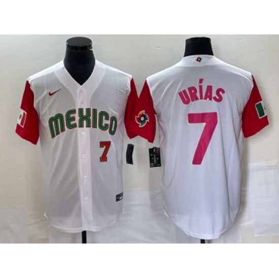 Men's Mexico Baseball #7 Julio Urias Number 2023 White Red World Classic Stitched Jersey26