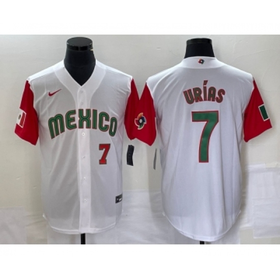 Men's Mexico Baseball #7 Julio Urias Number 2023 White Red World Classic Stitched Jersey52