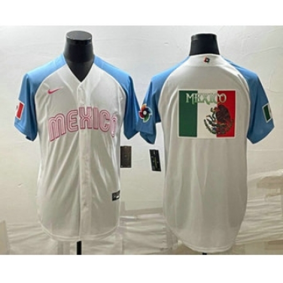 Men's Mexico Baseball Big Logo 2023 White Blue World Classic Stitched Jersey3