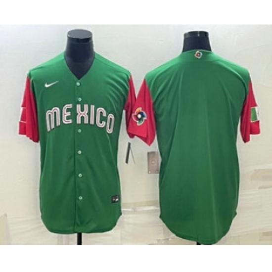 Men's Mexico Baseball Blank 2023 Green World Classic Stitched Jerseys