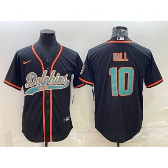 Men's Miami Dolphins #10 Tyreek Hill Black With Patch Cool Base Stitched Baseball Jersey
