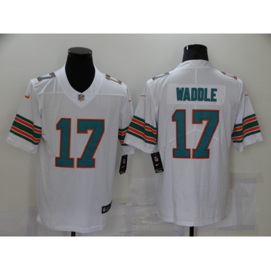 >Men's Miami Dolphins #17 Jaylen Waddle White Aqua 2021 Draft First Round Pick Leopard Jersey