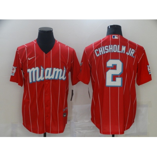 Men's Miami Marlins #2 Jazz Chisholm Nike Red 2021 City Connect Replica Player Jersey