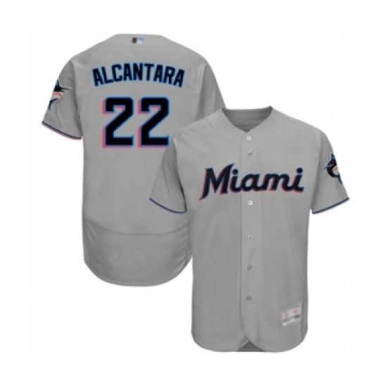 Men's Miami Marlins #22 Sandy Alcantara Grey Road Flex Base Authentic Collection Baseball Jersey