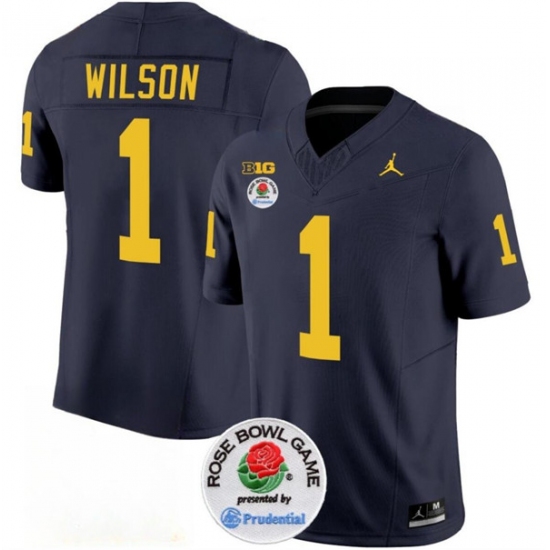 Men's Michigan Wolverines #1 Roman Wilson 2023 F.U.S.E. Navy Blue Rose Bowl Stitched Jersey