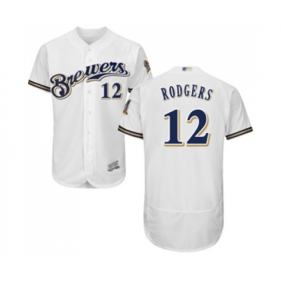 >Men's Milwaukee Brewers #12 Aaron Rodgers White Alternate Flex Base Authentic Collection Baseball Jersey
