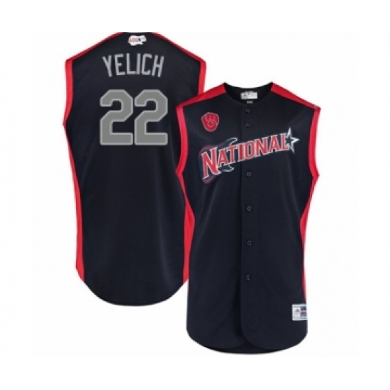 Men's Milwaukee Brewers #22 Christian Yelich Authentic Navy Blue National League 2019 Baseball All-Star Jersey