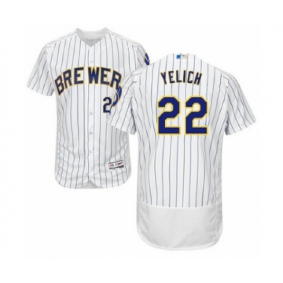 Men's Milwaukee Brewers #22 Christian Yelich White Home Flex Base Authentic Collection Baseball Player Jersey