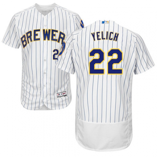 Men's Milwaukee Brewers #22 Christian Yelich White Strip Flexbase Authentic Collection Stitched MLB Jersey