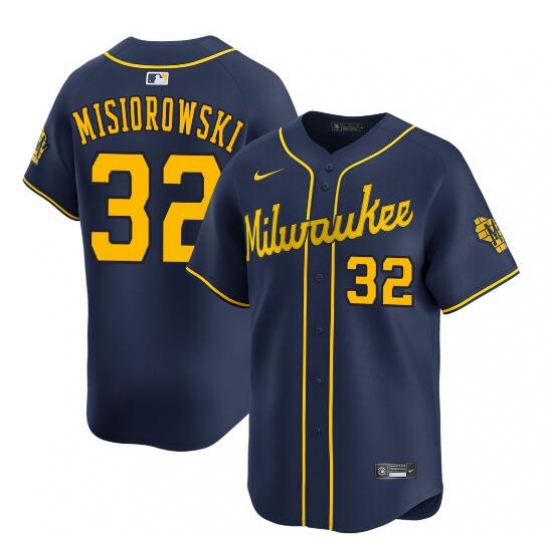 Men's Milwaukee Brewers #32 Jacob Misiorowski Navy Alternate Limited Stitched Baseball Jersey