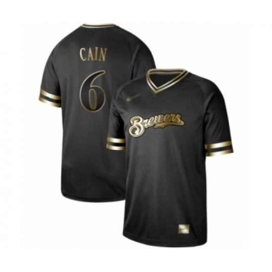 Men's Milwaukee Brewers #6 Lorenzo Cain Authentic Black Gold Fashion Baseball Jersey