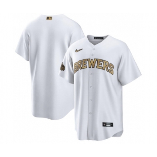 Men's Milwaukee Brewers Blank White 2022 All-Star Cool Base Stitched Baseball Jersey