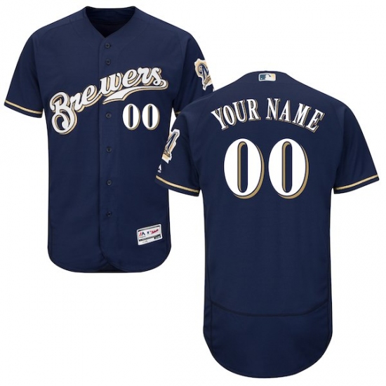 Men's Milwaukee Brewers Majestic Alternate Home Navy Flex Base Authentic Collection Custom Jersey