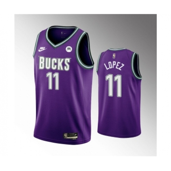 Men's Milwaukee Bucks #11 Brook Lopez 2022-23 Purple Classic Edition Swingman Stitched Basketball Jersey